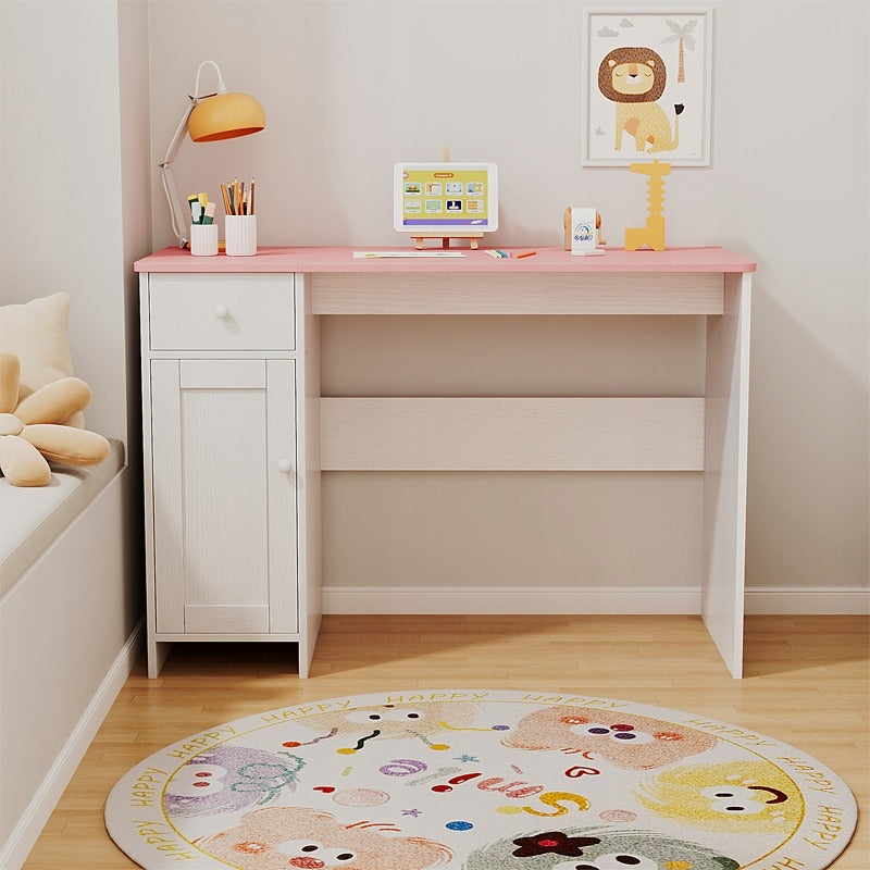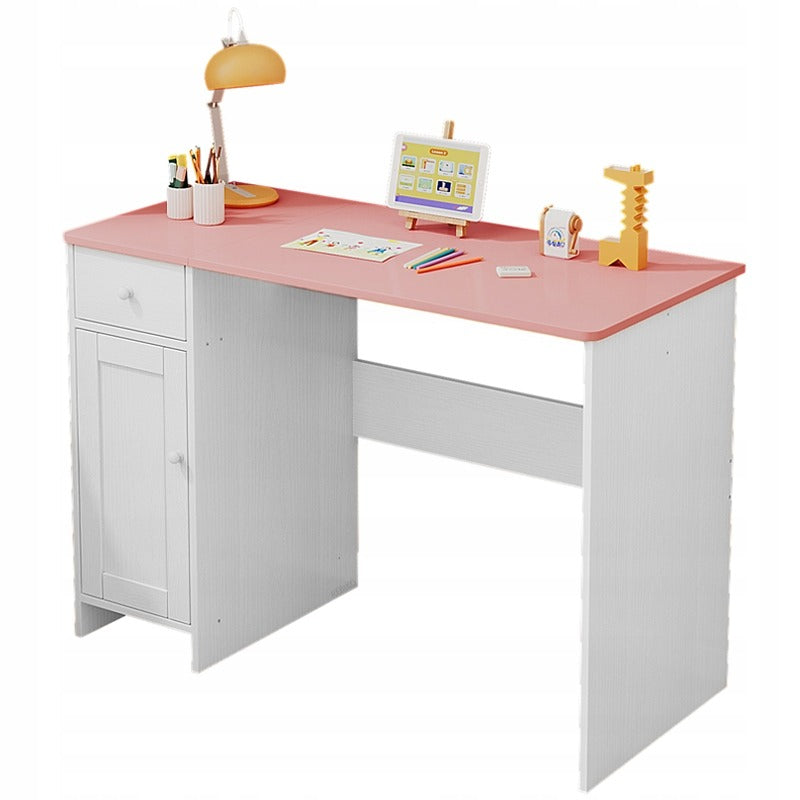 Fehér íróasztal fiókokkal és szekrénnyel lányoknak, rózsaszín asztallappal, tágas