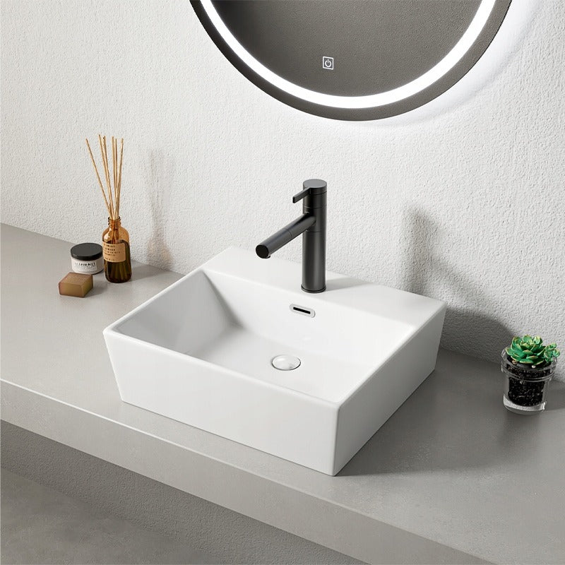 Fehér, téglalap alakú, nagy méretű, 41 x 36 cm-es kerámia mosdó