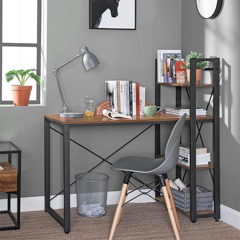 Ipari stílusú íróasztal beépített könyvespolccal – 120x60x120 cm, fém és forgácslapból készült.