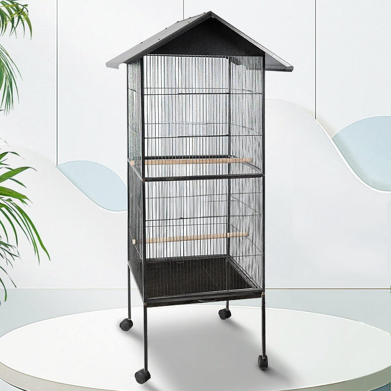 Ez a termék kizárólag házi kedvencek, például madarak tartására szolgál, beltéri vagy fedett kültéri használatra. A kalitkát mindig sík, stabil felületre kell helyezni, és a kerekeket rögzíteni kell, hogy elkerülhető legyen az elmozdulás vagy felborulás. Használat előtt minden esetben ellenőrizze, hogy az ajtók és zárak megfelelően működnek, és hogy a rácsok nincsenek meghajolva vagy eltörve. A sérült részek veszélyeztethetik az állatok biztonságát, és szökéshez vagy sérüléshez vezethetnek. A kalitkát ne tegye ki közvetlen napsugárzásnak, huzatnak vagy extrém hőmérséklet-ingadozásnak. A túlmelegedés vagy lehűlés negatívan befolyásolhatja az állatok egészségét. A termék nem alkalmas kisgyermekek számára, és játékra sem használható. Kérjük, ne hagyja a gyermekeket felügyelet nélkül a kalitka közelében, különösen, ha az állat bent tartózkodik. A tisztítást rendszeresen kell elvégezni a kihúzható tálca és a rácsok segítségével, miközben kerülje az agresszív vegyszerek használatát, mert azok károsíthatják az állatokat és az anyagokat. A gyártó által meghatározott szerelési útmutatót pontosan be kell tartani. A helytelen összeszerelés instabilitáshoz, a kalitka deformálódásához vagy az állatok sérüléséhez vezethet.