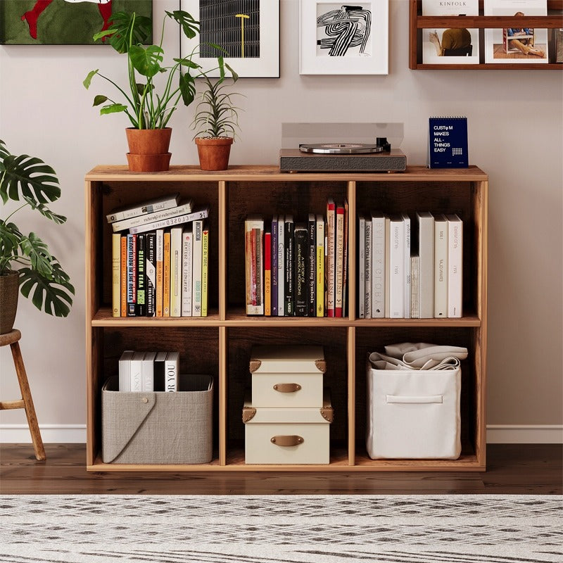 Nyitott könyvespolc, 3x2-es kocka fiókos szekrény, tágas polc könyveknek, irodának, rusztikus
