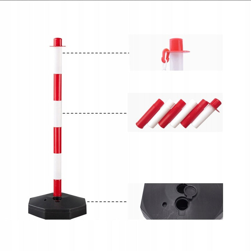 Ez a masszív és tartós, 85 cm magas korlátoszlop tökéletes megoldás parkolók, utak, építkezések és magánterületek biztosítására és kijelölésére. Tartós műanyagból készült, piros-fehér fényvisszaverő csíkok miatt jól látható.