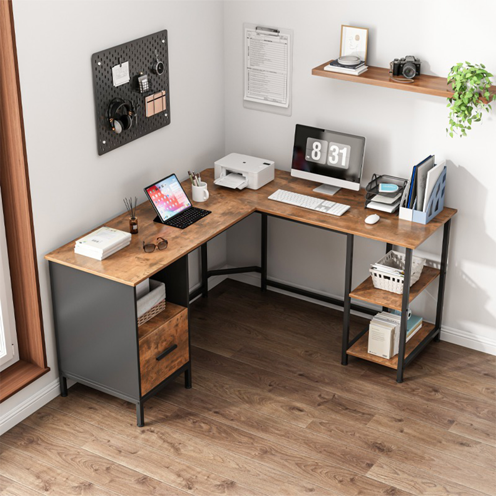 Fedezd fel ezt a vintage rusztikus stílusú sarokíróasztalt, amely ergonómikus és modern munkateret biztosít karakteres ipari kialakítással. L-alakú formájának köszönhetően hatékonyan kihasználja a szoba sarkait, így tökéletes otthoni irodába, dolgozószobába vagy tiniszobába.